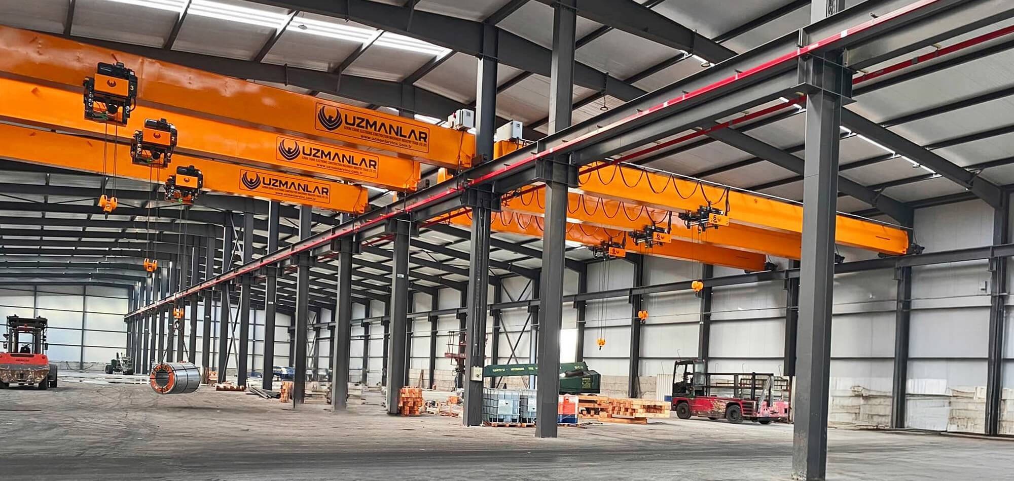 Köprülü vinç, portal vinç, monoray vinç sistemlerinin yanı sıra makine üretimi ve çelik inşaatı sektörüne özel ürün, ekipman ve profesyonel çözümler sunuyoruz.